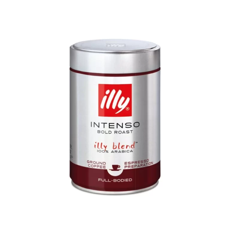 Illy Espresso Intenso este o cafea macinata 100% Arabica, cu o prajire intensa si un gust profund, puternic si bogat. Aroma sa persistenta combina note de cacao si fructe uscate, oferind o experienta espresso intensa si echilibrata.