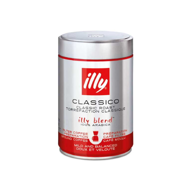 Cafeaua este ambalată într-o cutie metalică elegantă de 250 g, sub presiune cu gaz inert. Sistemul patentat illy garantează păstrarea prospețimii și conservarea aromelor pentru cel puțin 25 de luni.
