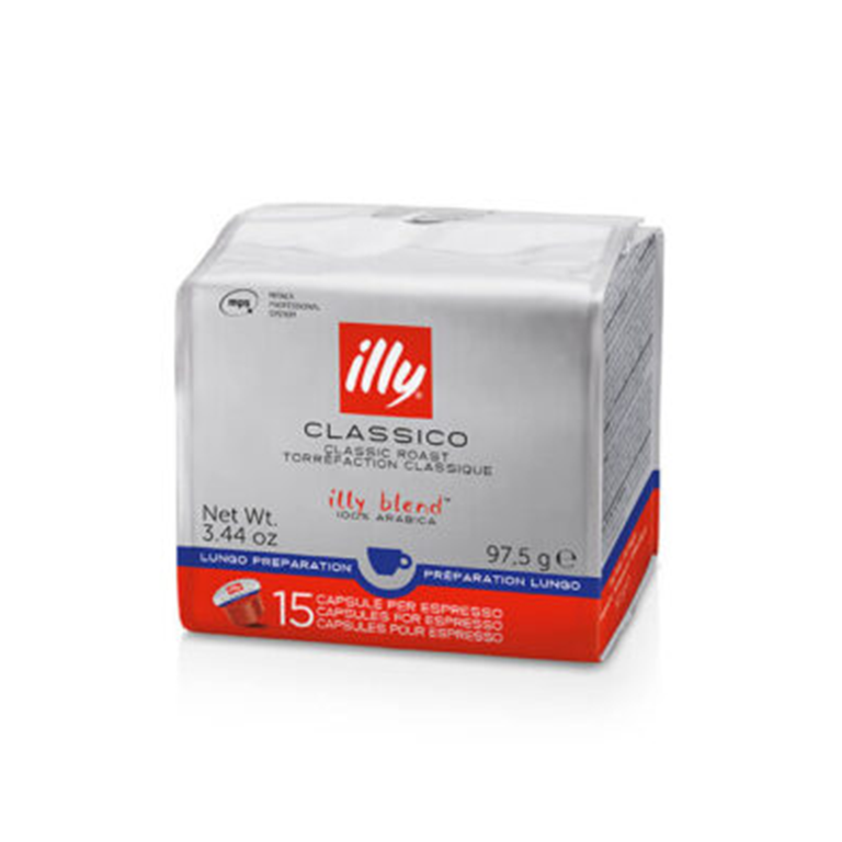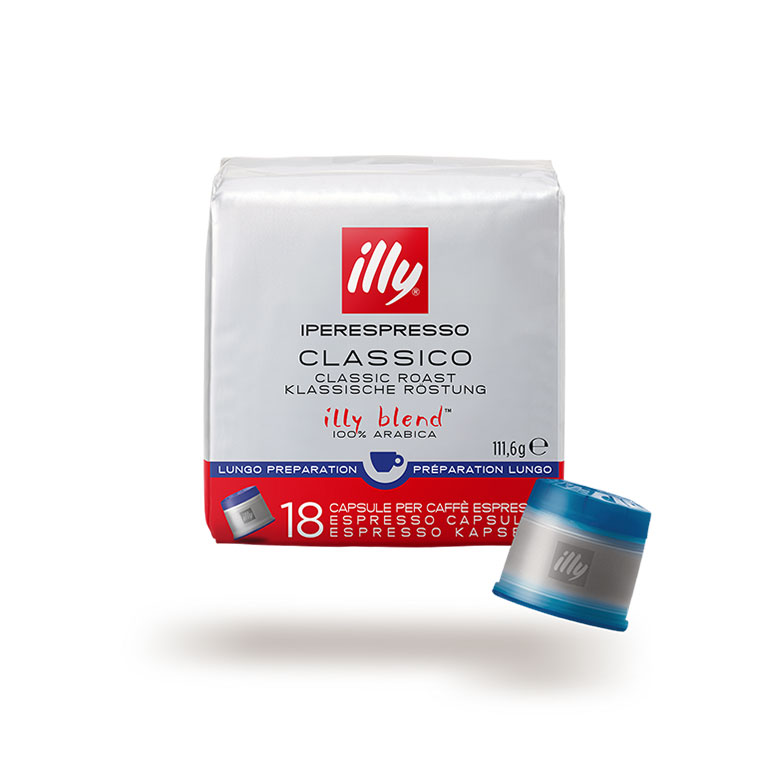Capsulele illy IperEspresso Classico Lungo aduc excelența illy pentru segmentul Home, cu un sistem inovator în două faze: preinfuzie la presiune uniformă pentru extragerea completă a aromei și emulsionare printr-un orificiu îngust, care dezvoltă o cremă bogată și persistentă.